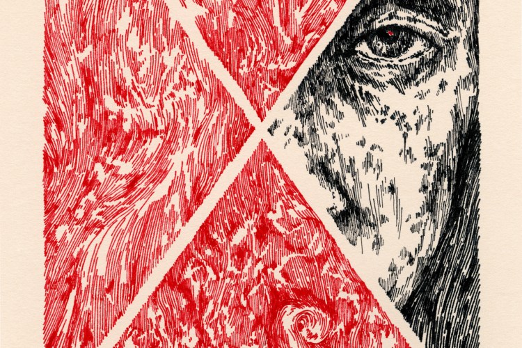 La piccola goccia di sudore che scendeva incrociò la riga di una lacrima e ne percorse la scia, giunsero assieme sul bordo dell’abisso, indugiarono per un istante e assieme saltarono giù.
